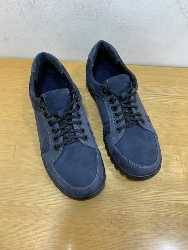 ТАКТИЧНІ ВІЙСЬКОВІ КРОСІВКИ СИНЬОГО КОЛЬОРУ КОМБІНОВАНІ ШКІРА “КРЕЙЗІ ХОРСТ” ТА "НУБУК". ГОЛЮНКОВОСТОПНИЙ СУСТАВ ЗМІЦНЕНЬ ЛАТЕКСОМ, ПІДОШВА ПРОШИТА ВОЩЕНОЮ НИТКОЮ, ПІДКЛАДКА ТА УСІЛКИ МЕМБРАНУ.