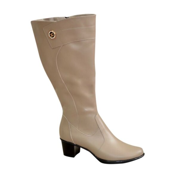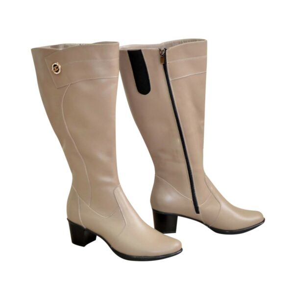 Жіночі чоботи з широкою халявою батали з натуральної шкіри кольору візон, з гумкою у верхній частині чобота. Декоровані фурнітурою. На невеликому підборі. Обсяг гомілки можна замовити від 34 см до 45 см для будь-якого розміру.