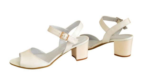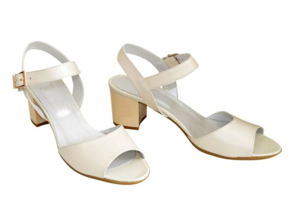 Класичні жіночі босоніжки з бежевої натуральної шкіри на стійкому підборі 6.5 см повномірні відповідають стандартній розмірній сітці. Можливий відшив у шкірі, замші різних кольорів.