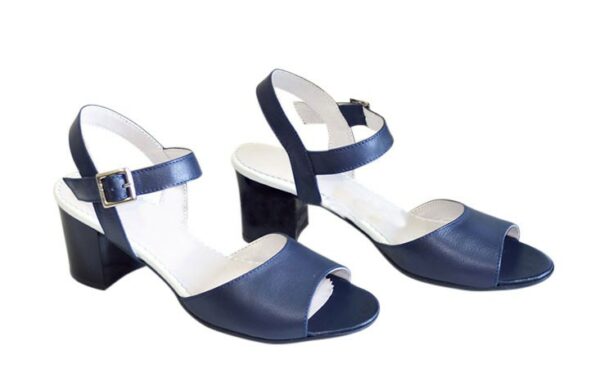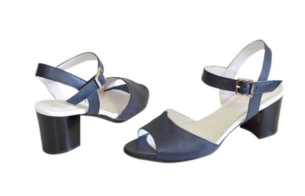 Дуже зручні жіночі босоніжки із натуральної шкіри синього кольору, на стійкому підборі 6.5 см повномірні відповідають стандартній розмірній сітці. Можливий відшив у шкірі, замші різних кольорів.