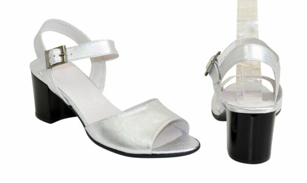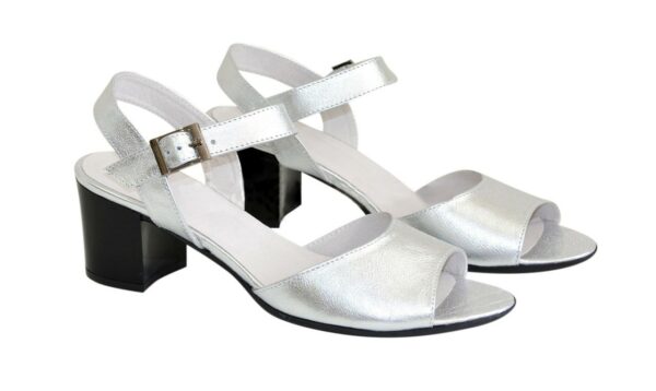 Неймовірно зручні жіночі босоніжки із натуральної шкіри сріблястого кольору, на стійкому підборі 6.5 см повномірні відповідають стандартній розмірній сітці. Можливий відшив у шкірі, замші різних кольорів.