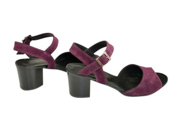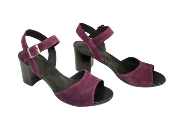 Зручні жіночі босоніжки з натуральної замші фіолетового кольору, на стійкому підборі 6.5 см повномірні відповідають стандартній розмірній сітці. Можливий відшив у шкірі, замші різних кольорів.