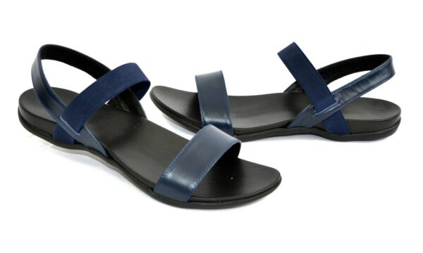 Зручні босоніжки на легкій поліуретановій підошві з натуральної шкіри синього кольору, з гумкою, повномірні відповідають стандартній розмірній сітці. Можливий відшив у шкірі, замші різних кольорів.