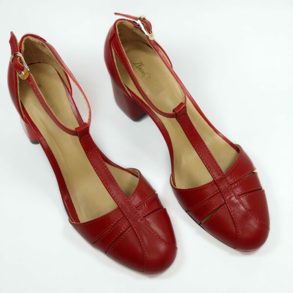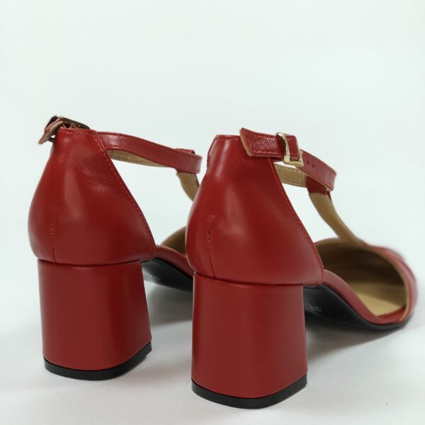 Стильні, жіночі босоніжки із задником із червоної шкіри на стійкому обтягнутому шкірою підборі 6.5 см. , завдяки додатковій фіксації гомілкостопу вдовні в носінні. Повномірні відповідають стандартній сітці розміру. Можливий відшив у шкірі, замші різних кольорів.
