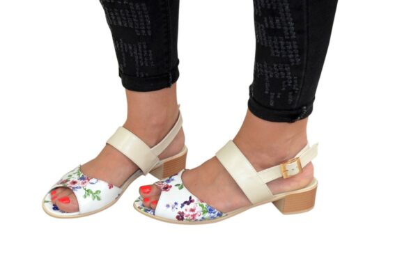 Витончені жіночі босоніжки, з натуральної шкіри кольору беж+білі квіти, на полегшеній підошві з каблуком 3.5см. повномірні відповідають стандартній розмірній сітці. Можливий відшив у шкірі, замші різних кольорів.