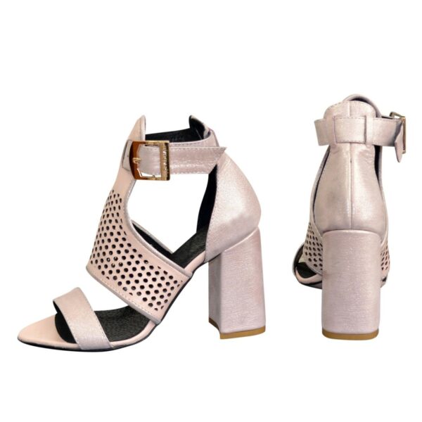 Ошатні зручні жіночі босоніжки на стійкому обтягнутому підборі 9.5 см. підошва блок шкіряний . Зі натуральної шкіри рожевого кольору з перфорацією. Завдяки додатковій фіксації гомілкостопу їх зручно носити. Повномірні, розраховані на стандартну повноту стегна. Відповідають стандартній розмірній сітці. Можливий відшив у шкірі, замші різних кольорів.