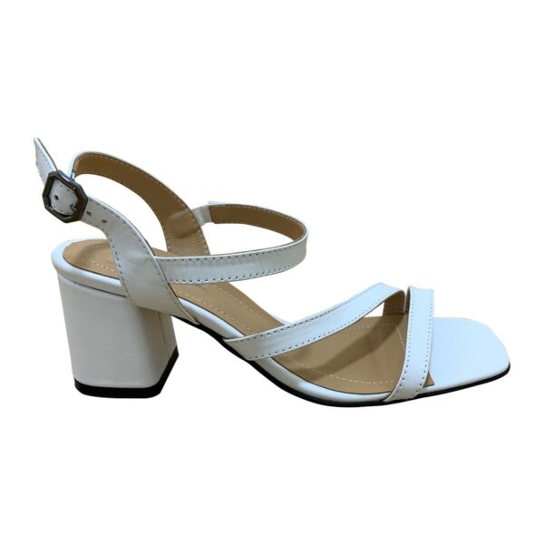 Молодіжні жіночі босоніжки на не високому обтягнутому шкірою каблуці 6.5 см. Виконані з натуральної шкіри білого кольору. Ручної роботи з використанням виключно натуральних матеріалів високої якості. Відповідають стандартній розмірній сітці. Розраховані на стандартну повноту стегна. Можливий відшив у шкірі, замші різних кольорів.