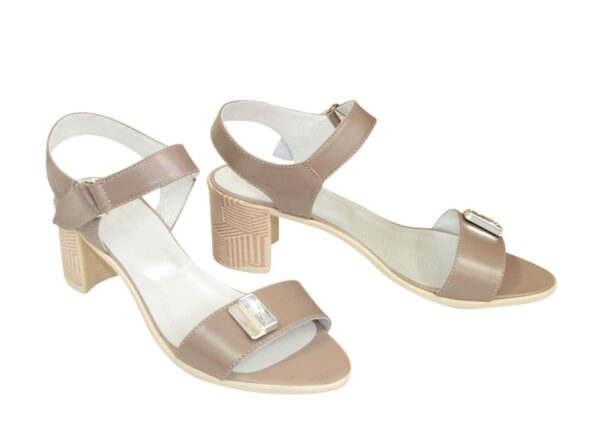 Дуже зручні жіночі босоніжки з натуральної шкіри, колір візон, на стійкому підборі 6.5 см. Повномірні відповідають стандартній розмірній сітці. Ця модель взуття максимально комфортно сидить на нозі. Завдяки додатковій фіксації гомілкостопу їх зручно носити та долати в них тривалі дистанції. Можливий відшив у шкірі, замші різних кольорів.