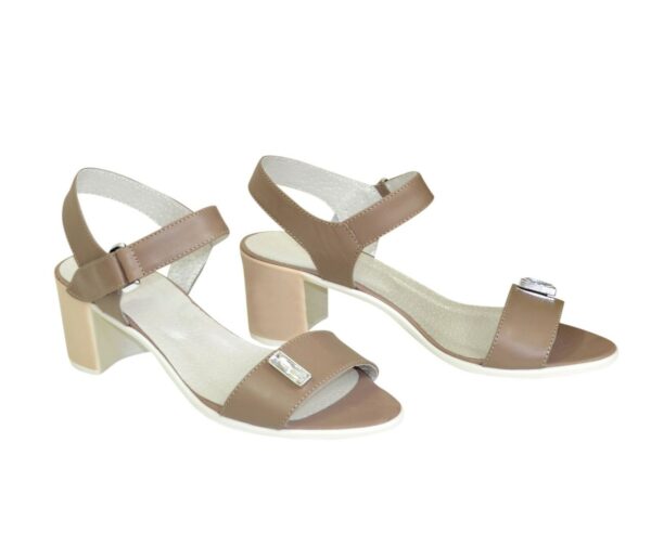 Дуже зручні жіночі босоніжки з натуральної шкіри, колір візон, на стійкому підборі 6.5 см. Повномірні відповідають стандартній розмірній сітці. Ця модель взуття максимально комфортно сидить на нозі. Завдяки додатковій фіксації гомілкостопу їх зручно носити та долати в них тривалі дистанції. Можливий відшив у шкірі, замші різних кольорів.