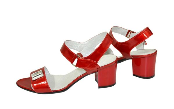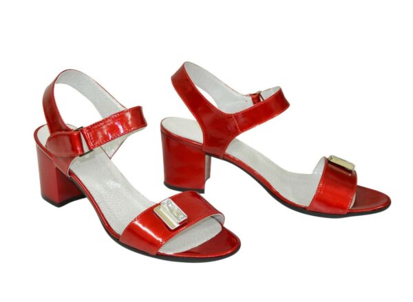 Дуже зручні жіночі босоніжки з натуральної лакової шкіри червоного кольору, на стійкому підборі 6.5 см. Повномірні відповідають стандартній сітці. Ця модель взуття максимально комфортно сидить на нозі. Завдяки додатковій фіксації гомілкостопу їх зручно носити та долати в них тривалі дистанції. Можливий відшив у шкірі, замші різних кольорів.