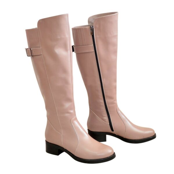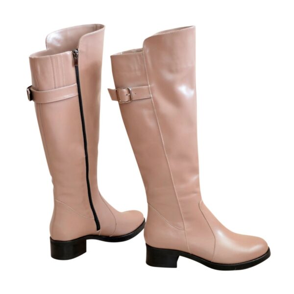 Стильні жіночі чоботи ботфорти з натуральної шкіри колір візон, з ремінцем у верхній частині чобота, на потовщеній підошві.