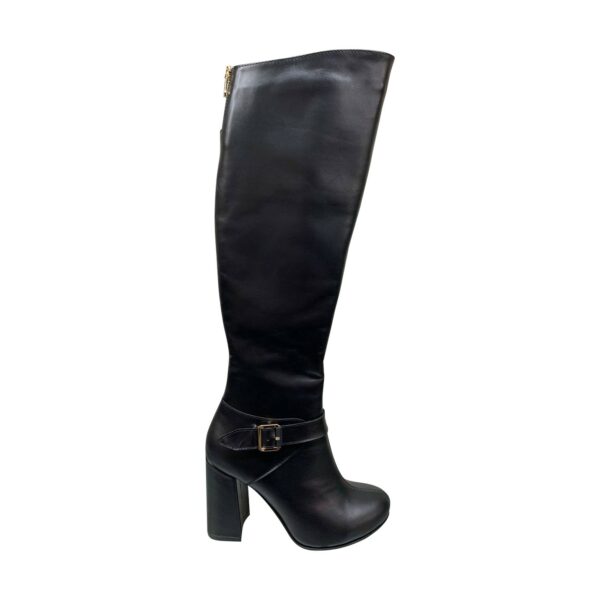 Стильні жіночі ботфорти із натуральної шкіри чорного кольору, на високих підборах.