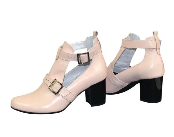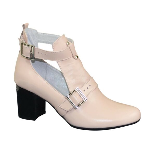 Стильні жіночі напіввідкриті ботильйони з натуральної шкіри колір пудра, на широкому стійкому підборі 6.5 см. Завдяки ремінцю регулюється обхват щиколотки. Ручної роботи з використанням виключно натуральних матеріалів високої якості. Відповідають стандартній розмірній сітці. Розраховані на стандартну повноту стегна. Можливий відшив у шкірі, замші різних кольорів.