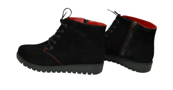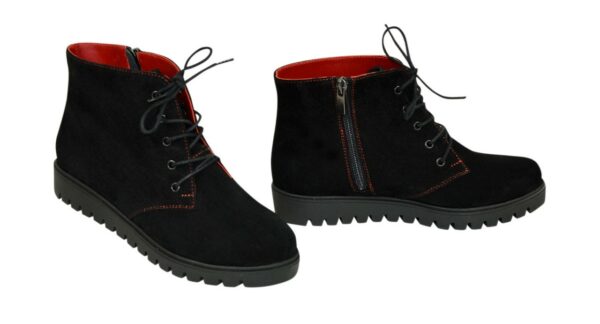 Класичні жіночі черевики на потовщеній тракторній підошві виготовлені з натуральної замші чорного кольору. З блискавкою та шнурівкою завдяки якій регулюється підйом. Дуже зручні, ідеально сидять на ніжці.