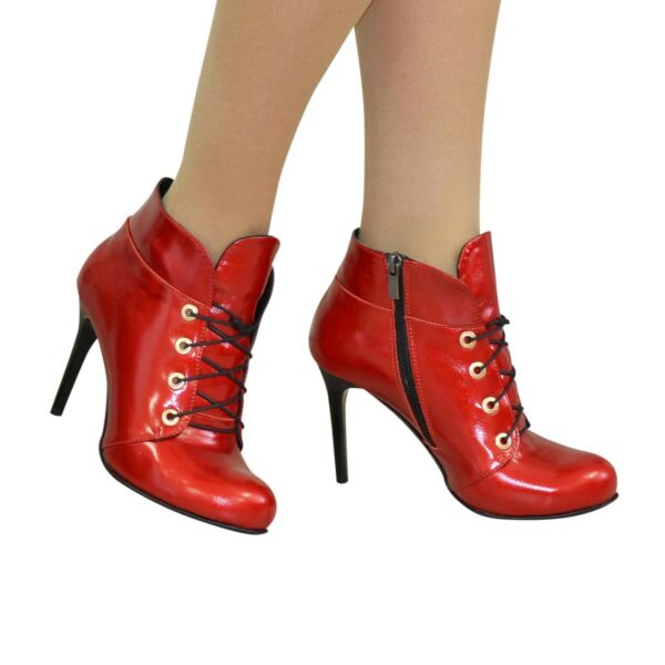 Класичні модні жіночі черевики на шпильці. Каблук стійкий, виготовлений з натуральної шкіри червоного кольору. На шнурівці завдяки якій регулюється підйом. Дуже зручні, ідеально сидять на ніжці – підкреслять Вашу індивідуальність