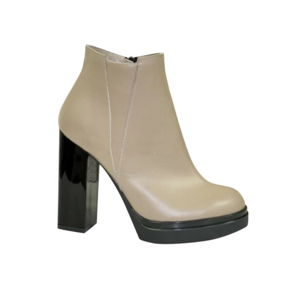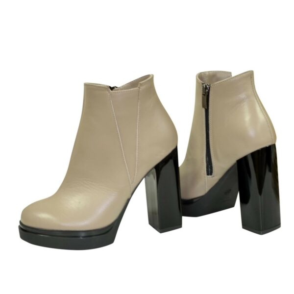Стильні жіночі черевики на високих стійких підборах, виготовлені з натуральної шкіри кольору візон. Дуже зручні, ідеально сидять на ніжці.