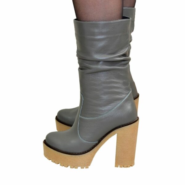 Стильні модні жіночі черевики вільного одягання, або їх ще називають черевики-гармошки, на широкому стійкому високому підборі, ідеальна посадка на будь-яку ногу, виготовлені з натуральної шкіри сірого кольору. Незамінні на кожен день, дуже зручні, практичні, ідеально сидять на ніжці – підкреслять Вашу індивідуальність.