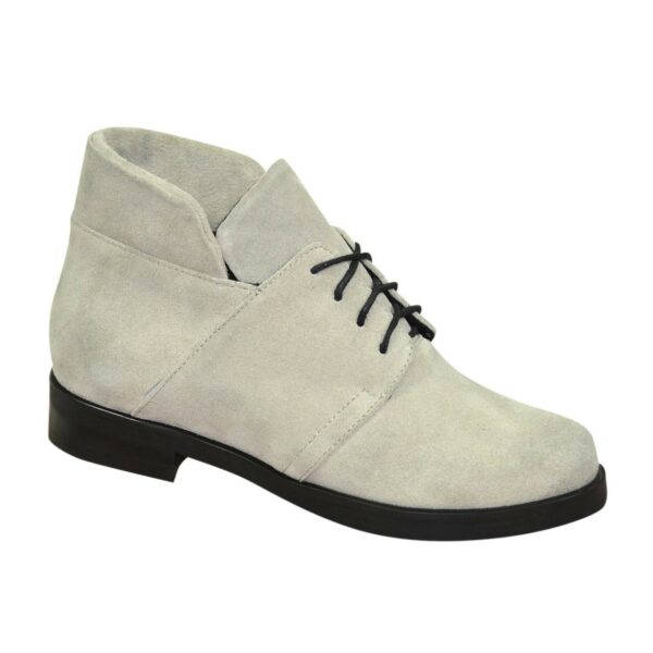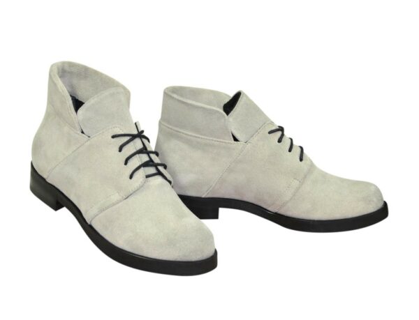 Стильні класичні жіночі черевики на невисокому підборі, виготовлені з натуральної шкіри (нубук) сірого кольору, за допомогою шнурівки регулюється підйомом. Дуже зручні, ідеально сидять на ніжці.