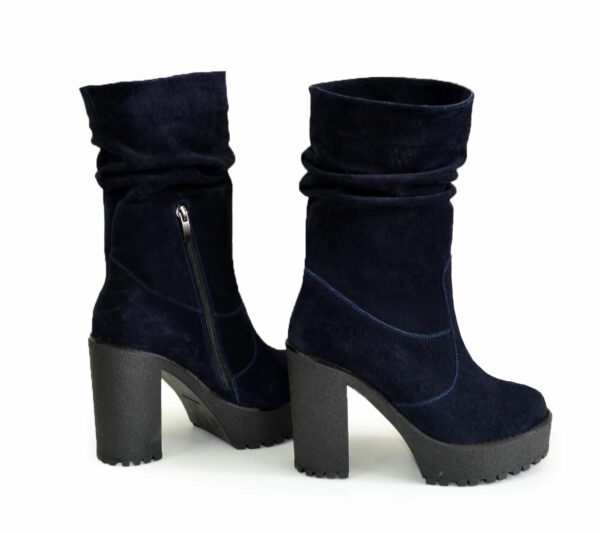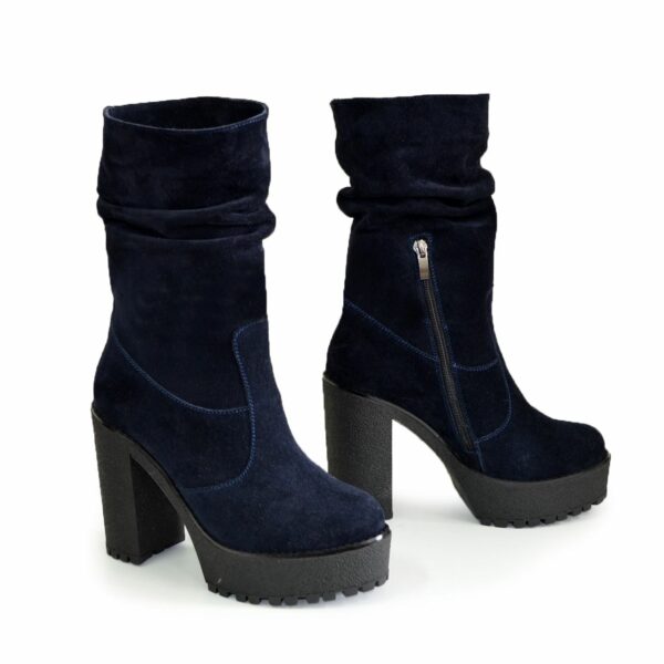 Стильні модні жіночі черевики вільного одягання, або їх ще називають черевики-гармошки, на широкому стійкому високому підборі, ідеальна посадка на будь-яку ногу, виготовлені з натуральної замші синього кольору. Незамінні на кожен день, дуже зручні, ідеально сидять на ніжці – підкреслять вашу індивідуальність.
