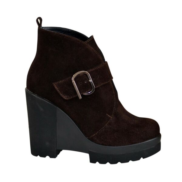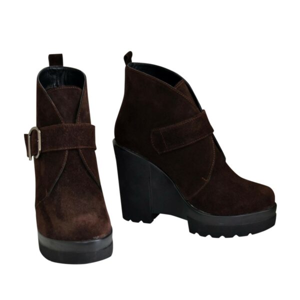 Класичні жіночі черевики на стійкій платформі виготовлені з натуральної замші коричневого кольору. Підйом регулюється ремінцем. Дуже зручні, ідеально сидять на ніжці.