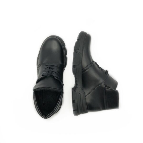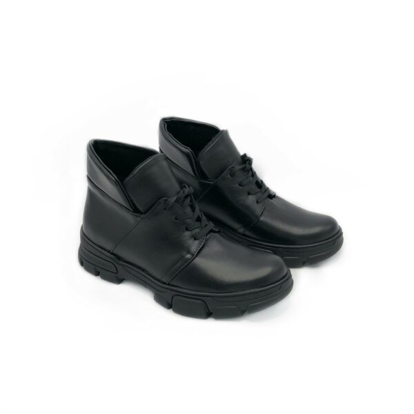 Модні стильні жіночі черевики на потовщеній підошві, виготовлені із натуральної шкіри чорного кольору. Завдяки шнурівці регулюється підйом. Дуже зручні, ідеально сидять на ніжці – підкреслять вашу індивідуальність.