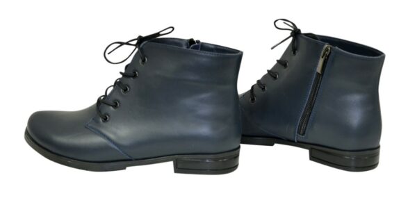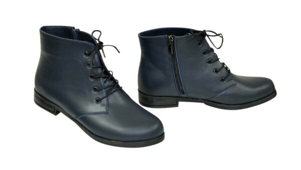 Класичні жіночі черевики на низькому ходу з маленьким каблучком, виготовлені із натуральної шкіри синього кольору. З блискавкою та шнурівкою завдяки якій регулюється підйом. Дуже зручні, ідеально сидять на ніжці.