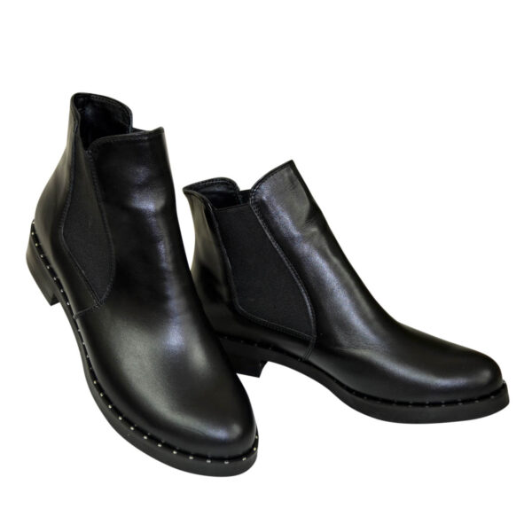 Класичні жіночі черевики на невеликих підборах, виготовлені з натуральної шкіри чорного кольору. Вільного одягання, завдяки гумкам регулюється підйом Дуже зручні, ідеально сидять на ніжці.