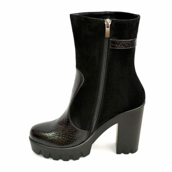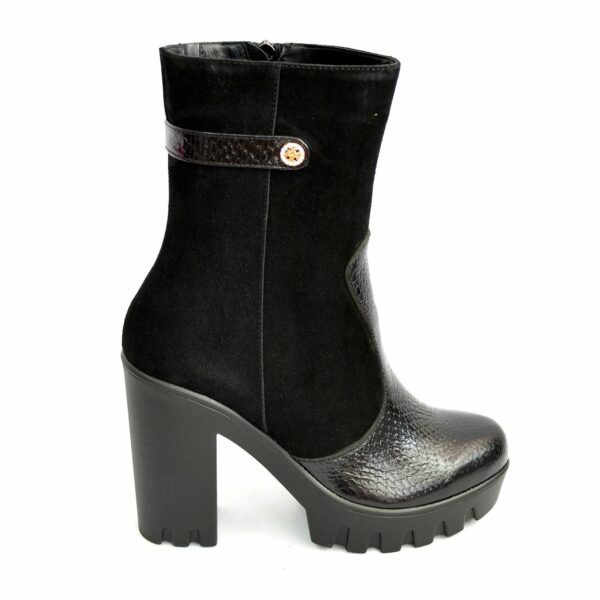 Черевики жіночі на широкому стійкому підборі, виготовлені з натуральної шкіри з тисненням "рептилії" та натуральної замші. Декоровані ремінцем та фурнітурою Незамінні на кожен день, дуже зручні, практичні, ідеально сидять на ніжці – підкреслять Вашу індивідуальність
