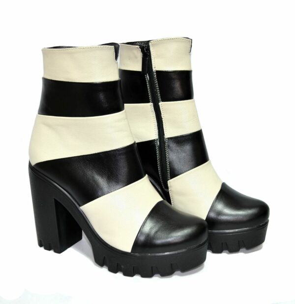 Черевики жіночі на широкому стійкому підборі, виготовлені з натуральної шкіри чорного та бежевого кольору. Незамінні на кожен день, дуже зручні, практичні, ідеально сидять на ніжці – підкреслять Вашу індивідуальність.