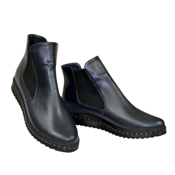 Класичні жіночі черевики на низькому ходу виготовлені з натуральної шкіри синього кольору. Вільного одягання, завдяки гумкам регулюється підйом Дуже зручні, ідеально сидять на ніжці.