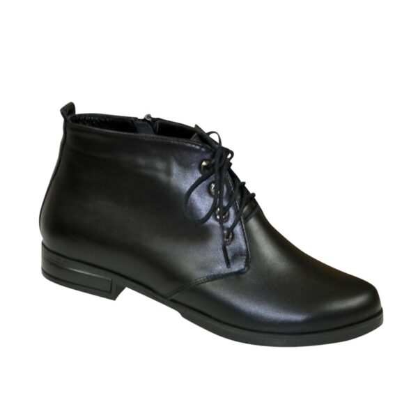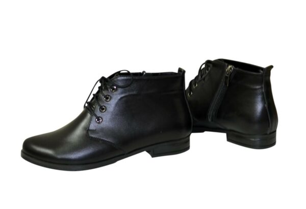 Класичні жіночі черевики на низькому ходу з маленьким каблучком, виготовлені із натуральної шкіри чорного кольору. З блискавкою та шнурівкою завдяки якій регулюється підйом. Дуже зручні, ідеально сидять на ніжці.