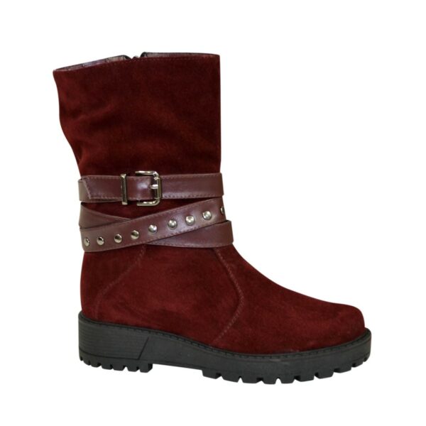 Стильні жіночі напівчоботи на потовщеній підошві, виготовлені з натуральної замші бордового кольору, декоровані ремінцями з натуральної шкіри. Незамінні на кожен день, дуже зручні, ідеально сидять на ніжці – підкреслять вашу індивідуальність.