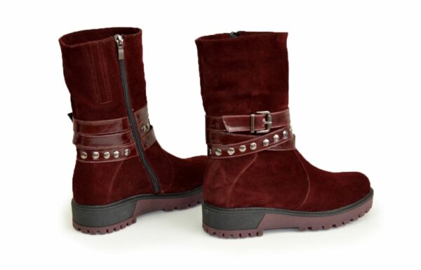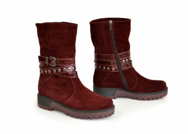Стильні жіночі напівчоботи на потовщеній підошві, виготовлені з натуральної замші бордового кольору, декоровані ремінцями з натуральної шкіри. Незамінні на кожен день, дуже зручні, ідеально сидять на ніжці – підкреслять вашу індивідуальність.