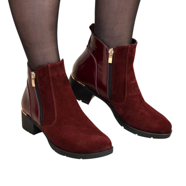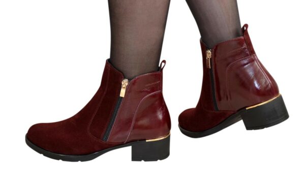 Класичні жіночі черевики на невеликому підборі, виготовлені з натуральної шкіри та замші бордового кольору. Із двома блискавками. Дуже зручні, ідеально сидять на ніжці.