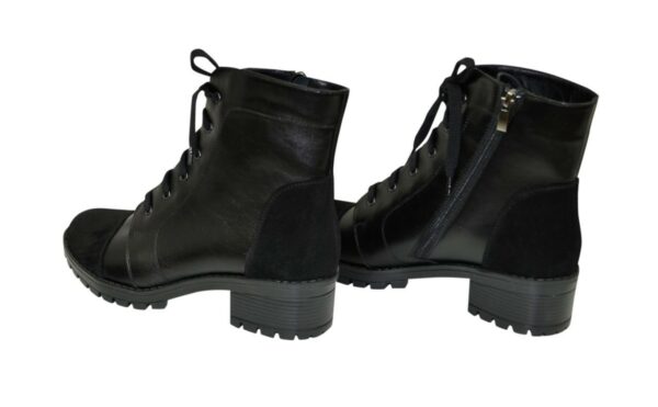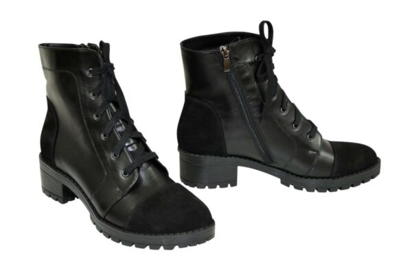 Класичні жіночі черевики на широкому підборі, виготовлені з натуральної шкіри та замші чорного кольору. З блискавкою та шнурівкою завдяки якій регулюється підйом. Дуже зручні, ідеально сидять на ніжці.