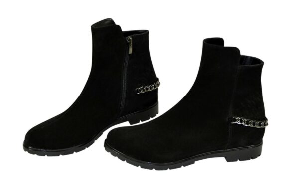 Стильні жіночі класичні черевики на невисокому підборі, виготовлені з натуральної замші чорного кольору. Дуже зручні, ідеально сидять на ніжці.
