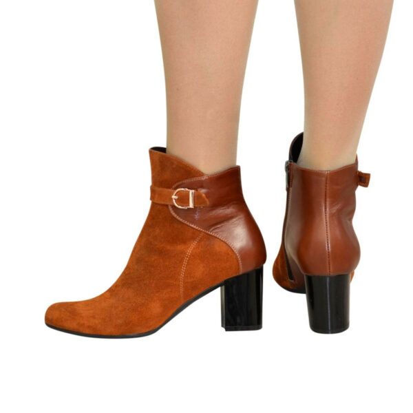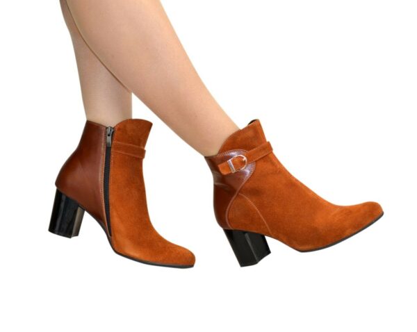 Жіночі комбіновані черевики у класичному стилі з натуральної замші та шкіра рудого кольору на широкому стійкому підборі. Висота з урахуванням каблука – 20 см. Висота до аблука – 6,5 см Обхват – 26-27 см. Утеплювач – за бажанням замовника БАЙКА, хутро ПОЛУШЕРСТЬ 70%. Повномірні, відповідають стандартній сітці розміру. У нас працює послуга "індивідуальне виготовлення". Можливий відшив у шкірі, замші різних кольорів. Класичні черевики мають унікальну форму, тому чудово поєднуються з різними стилями в одязі. ТМ zlata-studio знайдемо підхід до кожного клієнта.