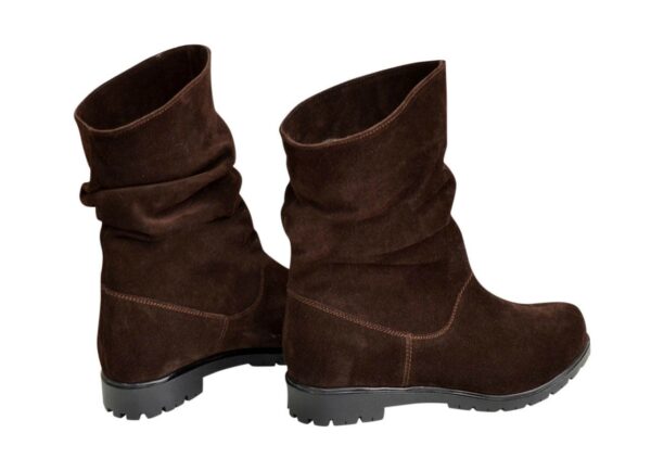 Стильні жіночі черевики прямого одягання на потовщеній підошві, виготовлені з натуральної замші коричневого кольору. Комфортні акуратні та практичні, ідеально сидять на ніжці.