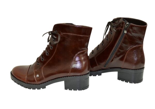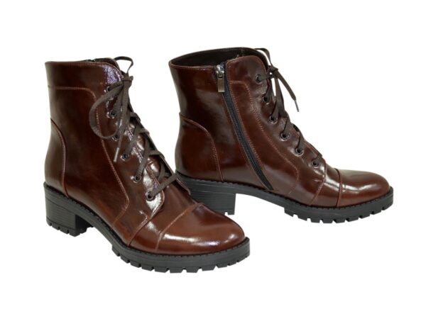 Класичні жіночі черевики на широкому підборі, виготовлені з натуральної шкіри робат коричневого кольору. З блискавкою та шнурівкою завдяки якій регулюється підйом. Дуже зручні, ідеально сидять на ніжці.