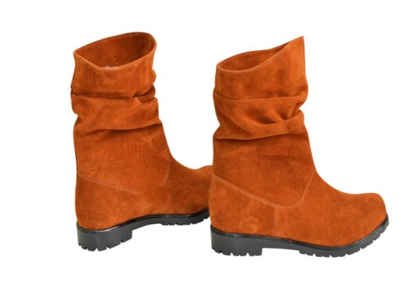 Стильні жіночі черевики прямого одягання на потовщеній підошві, виготовлені з натуральної замші рудого кольору. Комфортні акуратні та практичні, ідеально сидять на ніжці.