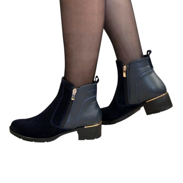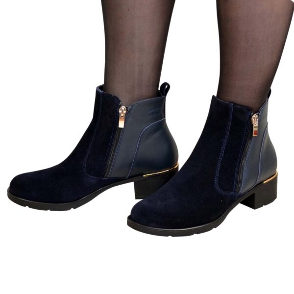 Класичні жіночі черевики на невеликому підборі, виготовлені з натуральної шкіри та замші синього кольору. Із двома блискавками. Дуже зручні, ідеально сидять на ніжці.
