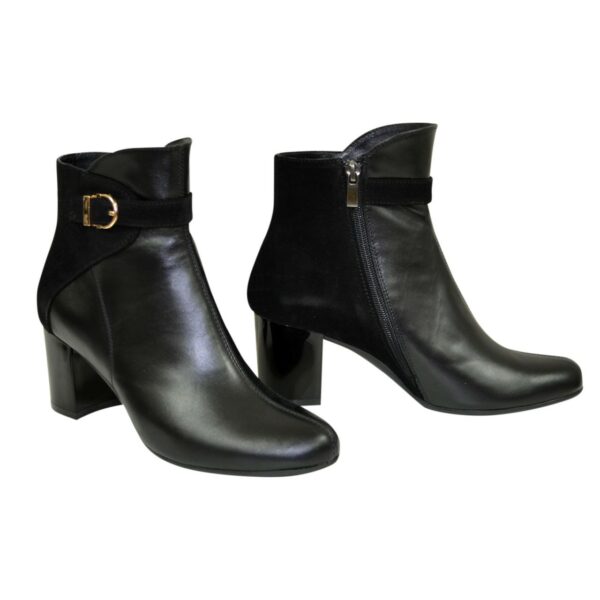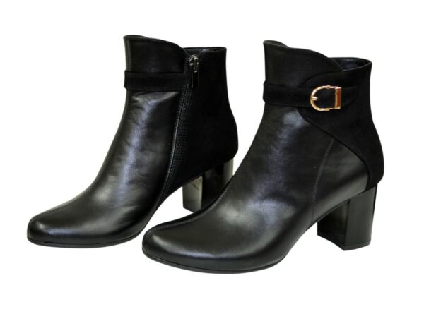 Жіночі комбіновані черевики в класичному стилі з натуральної шкіри та замші благородного чорного кольору на широкому стійкому підборі. Висота з урахуванням каблука – 20 см. Висота до аблука – 6,5 см Обхват – 26-27 см. Утеплювач – за бажанням замовника БАЙКА, хутро ПОЛУШЕРСТЬ 70%. Повномірні, відповідають стандартній сітці розміру. У нас працює послуга "індивідуальне виготовлення". Можливий відшив у шкірі, замші різних кольорів. Класичні черевики мають унікальну форму, тому чудово поєднуються з різними стилями в одязі. ТМ zlata-studio знайдемо підхід до кожного клієнта.