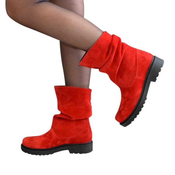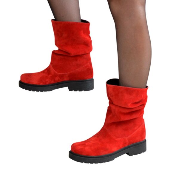 Стильні жіночі черевики прямого одягання на потовщеній підошві, виготовлені з натуральної замші червоного кольору. Комфортні акуратні та практичні, ідеально сидять на ніжці.