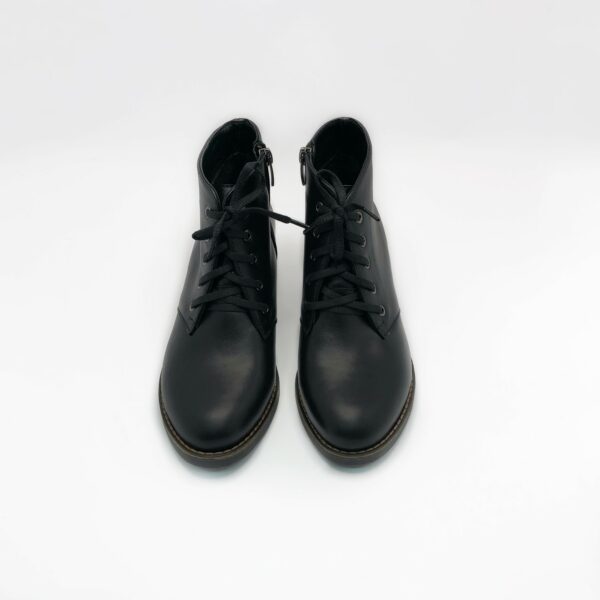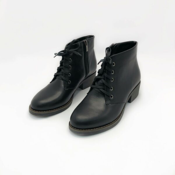 Класичні жіночі черевики на низькому ходу з маленьким каблучком, виготовлені із натуральної шкіри чорного кольору. З блискавкою та шнурівкою завдяки якій регулюється підйом. Дуже зручні, ідеально сидять на ніжці.