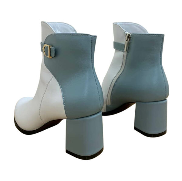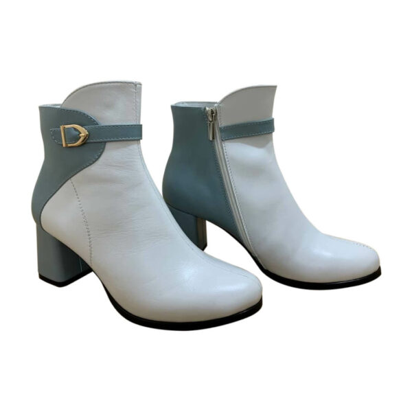 Жіночі черевики в класичному стилі з натуральної шкіри білого та блакитного кольору, на широкому обтягнутому шкірою каблуці. Висота з урахуванням каблука ― 20 см. Висота до аблуку ― 6,5 см Обхват ― 26-27 см. Утеплювач – за бажанням замовника БАЙКА, хутро ПОЛУШЕРСТЬ 70%. Повномірні, відповідають стандартній сітці розміру. У нас працює послуга "індивідуальне виготовлення". Можливий відшив у шкірі, замші різних кольорів. Класичні черевики мають унікальну форму, тому чудово поєднуються з різними стилями в одязі. ТМ zlata-studio знайдемо підхід до кожного клієнта.