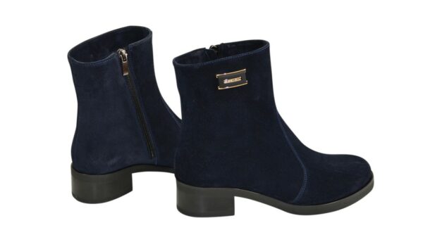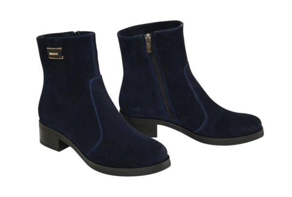 Класичні жіночі черевики на зручному невисокому підборі, виготовлені із натуральної замшевої шкіри синього кольору. Декоровані фурнітурою. Дуже зручні, ідеально сидять на ніжці.