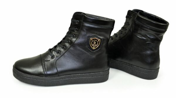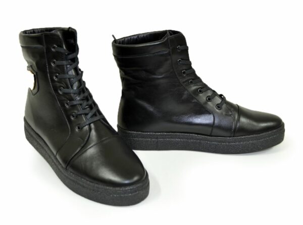 Модні стильні жіночі черевики на потовщеній підошві виготовлені з натуральної шкіри чорного кольору. Декоровані фурнітурою. Дуже зручні, ідеально сидять на ніжці – підкреслять вашу індивідуальність.