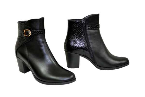 Жіночі черевики у класичному стилі з натуральної гладкої шкіри благородного чорного кольору комбінований чорною вставкою шкіри "рептилія" на широкому стійкому підборі. Висота з урахуванням каблука – 20 см. Висота до аблука – 6,5 см Обхват – 26-27 см. Утеплювач – за бажанням замовника БАЙКА, хутро ПОЛУШЕРСТЬ 70%. Повномірні, відповідають стандартній сітці розміру. У нас працює послуга "індивідуальне виготовлення". Можливий відшив у шкірі, замші різних кольорів. Класичні черевики мають унікальну форму, тому чудово поєднуються з різними стилями в одязі. ТМ zlata-studio знайдемо підхід до кожного клієнта.
