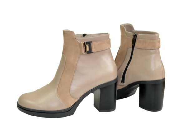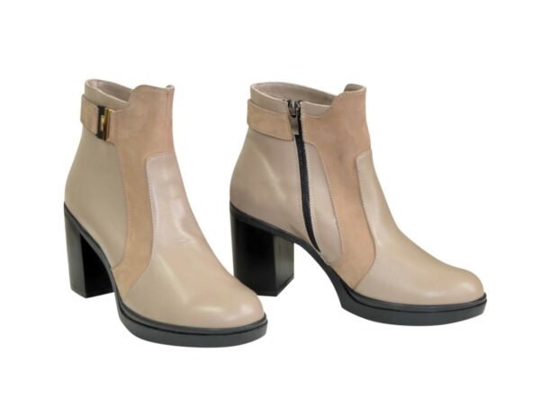 Класичні модні жіночі черевики на широкому стійкому підборі, виготовлені з натуральної шкіри, комбіновані замшею кольору візон. Незамінні на кожен день, дуже зручні, ідеально сидять на ніжці – підкреслять вашу індивідуальність.
