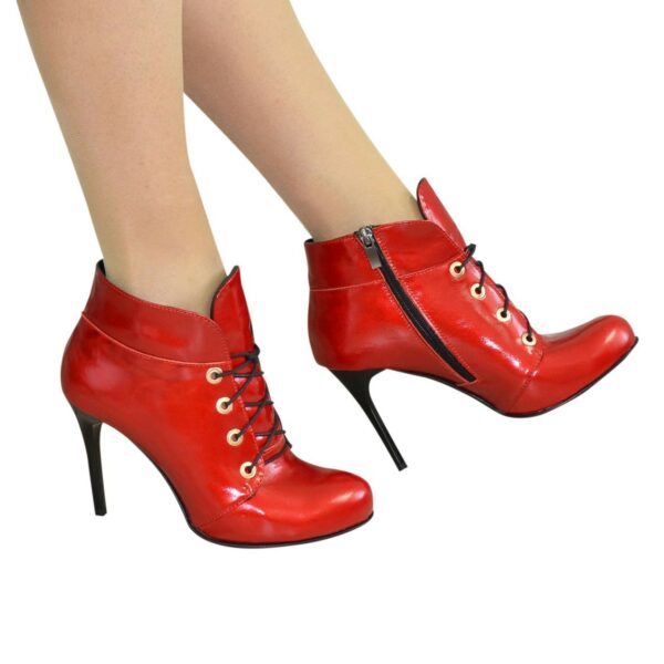 Класичні модні жіночі черевики на шпильці. Каблук стійкий, виготовлений з натуральної шкіри червоного кольору, за допомогою шнурівки регулюється підйом. Дуже зручні, ідеально сидять на ніжці – підкреслять Вашу індивідуальність